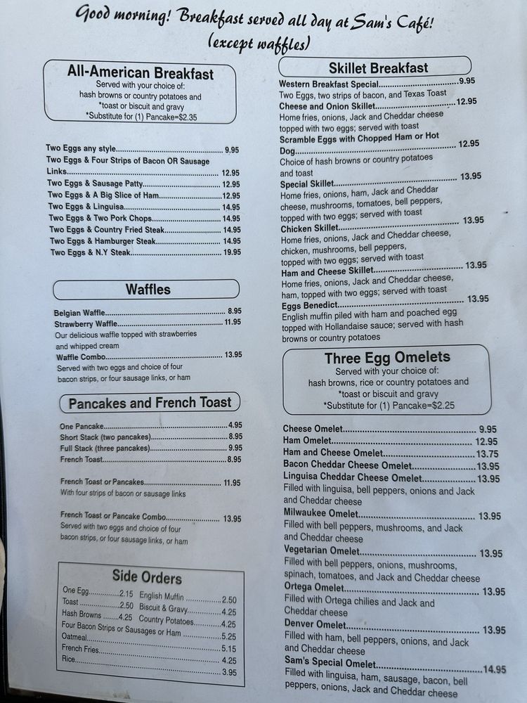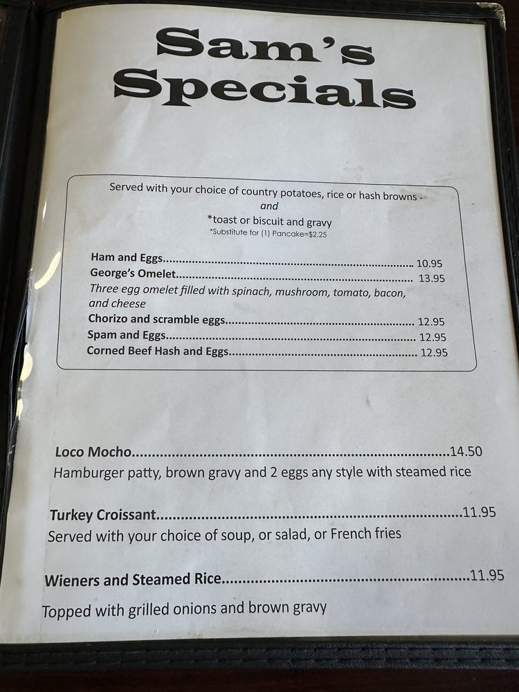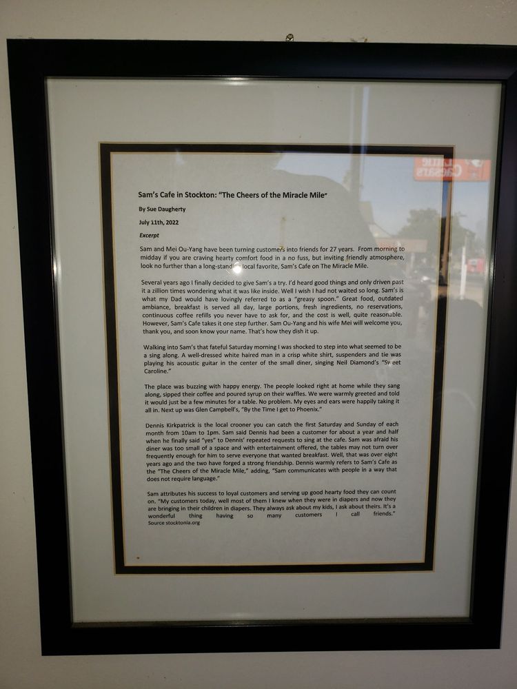 Sam’s Cafe, located on Pacific Ave in Stockton, CA, is a beloved spot for locals and visitors alike. With a cozy and simple decor, this Chinese-American cafe offers a range of breakfast and brunch options, including omelettes, scrambles, and waffles. Customers praise the friendly and attentive staff, as well as the quick service. The menu features many vegetarian options and dishes like pork chop and eggs that have become customer favorites over the years. Meals for two typically range from $35 to $45, including tip. With outdoor seating, gender-neutral restrooms, and a family-owned atmosphere, Sam’s Cafe provides a welcoming and comfortable dining experience. Whether you're stopping in for a quick breakfast or leisurely brunch, this cafe is sure to satisfy your cravings.